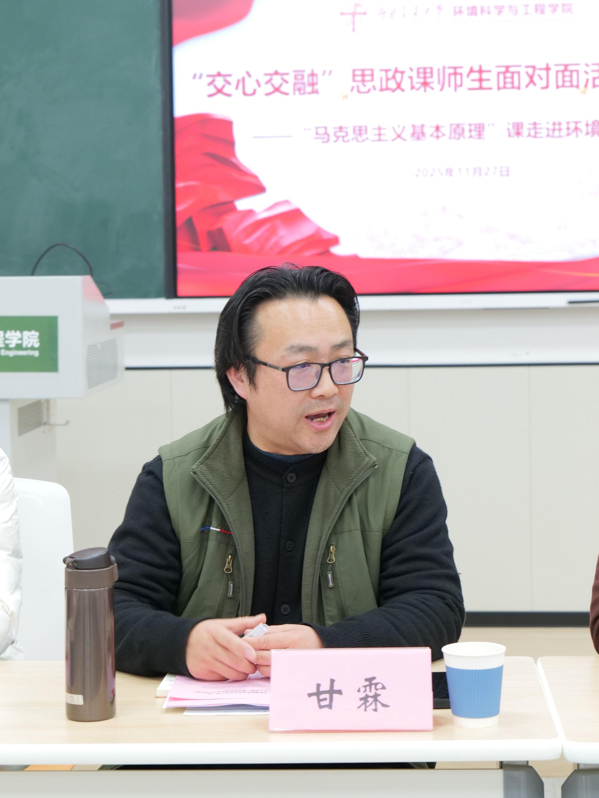活动最后,437437必赢国际党委书记甘霖作总结讲话。他高度肯定了本次活动取得的成效,指出师生在交流中凝聚的“专业+思政”融合共识,正是“交心交融”活动的核心价值所在——让理论不再“高高在上”,而是落地生根;让专业成长紧扣时代脉搏,锚定美丽中国建设的使命坐标,也期待学院与马克思主义学院紧密携手,共同推动思政教学创新与育人成效再上新台阶。